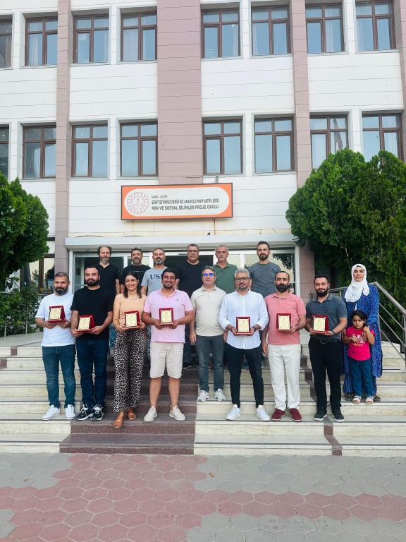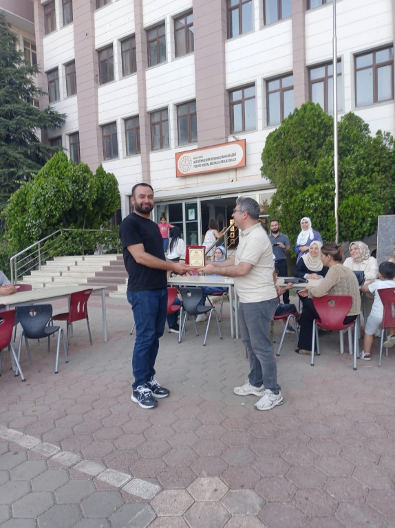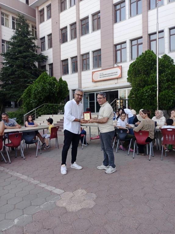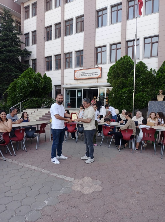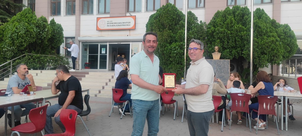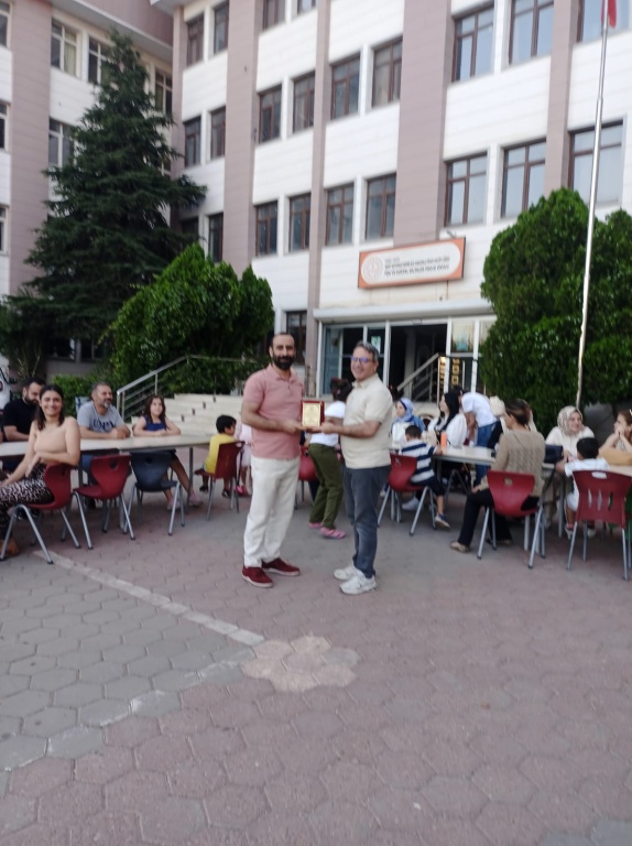 Okulumuzda görev süreleri biten ve başka okullara tayin olan Coğrafya Öğretmenimiz Mehmet Mustafa YILMAZ, Tarih Öğretmenimiz Edip ERTAŞ, Matematik Öğretmenlerimiz Gizem PİŞKİN ERTAŞ, Efrahim ÖZBEY, Özlem KANDEMİR POYRAZ, Din Kültürü Öğretmenimiz Bekir DENİZ, Biyoloji Öğretmenimiz Metin KILIÇ, İHL Meslek Dersleri Öğretmenimiz Kübra AYDIN, Türkçe Öğretmenimiz Yeşim EGE ÇILGIN, Türk Dili ve Edebiyatı Öğretmenimiz İzzet KURT, Görsel Sanatlar Öğretmenimiz Nurullah YILMAZ ve Aşçımız Gökhan GÖZAL'a okul müdürüz Şeyhmus KILINÇ tarafından plaket takdim edildi. Okulda düzenlenen yemek organizasyonu sonucunda hatıra fotoğrafları çekildi. Görev süreleri biten öğretmenlerimize okulumuzdaki görev süreleri boyunca yaptıkları çalışmalardan dolayı teşekkür eder, yeni görev yerlerinde başarılar dileriz.